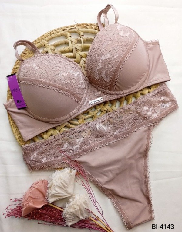 Conjunto soft sin push up de microfibra con detalle de puntilla, con colaless.
